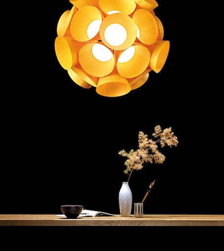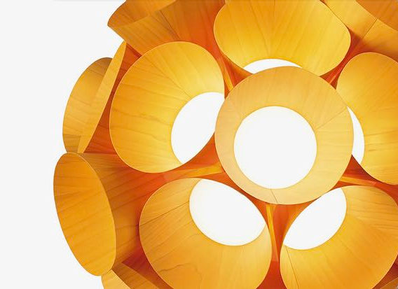 The florets are made using LZF’s wood veneer and then placed side by side, where they rise and fall in tandem from the Dandelion’s centre. The effect is striking, with every funnel of light coalescing in one collective and brilliant whole.
